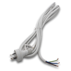 CORDSET WHITE 3 METRE 10A 3 CORE 1MM BACK ENTRY 3 PIN