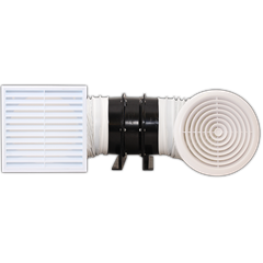 - The inlet grille can be mounted close to the steam or odour source, to remove air quickly