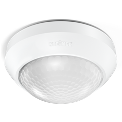 12 m.The detection zone can be set to any requirement by fitting shrouds. The IS 360-3 is available in black and white.The multi-talent for indoors and outdoors.Infrared wall sensor IS 360-3, ideal for mounting under soffits, in carports, on large building facades and driveways, 3 pyro sensors for a 360° angle of coverage, reach can be set up to 12 m, selectable time and twilight threshold, detection zone can be customised with shrouds. The multi-talent for indoors and outdoors.The infrared ceiling sensor that satisfies all demands and is really simple to install.Simply genius: sophisticated technology that is installed and configured in just a few steps thanks to a clever installation concept. Thanks to its three pyro sensors, the infrared surface-mounted sensor has an impressive 360° angle of coverage and a range of up to